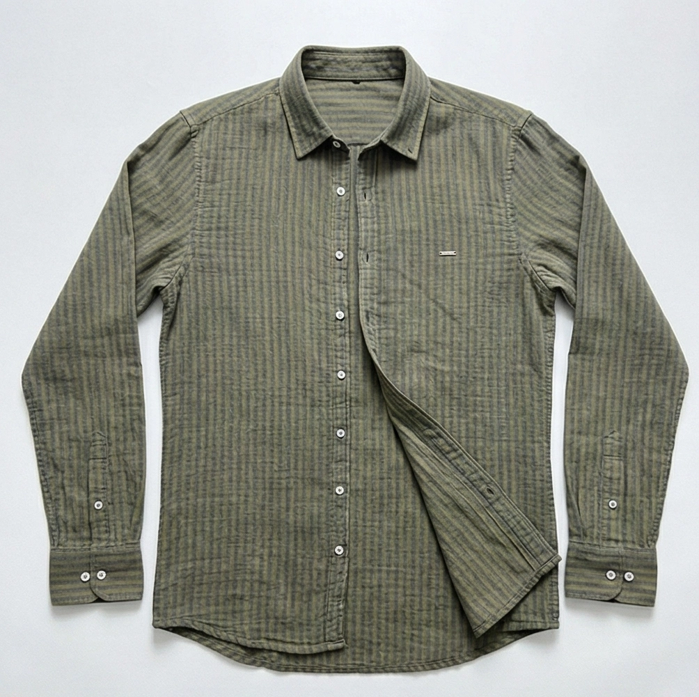 / پیراهن راه راه زیتونی