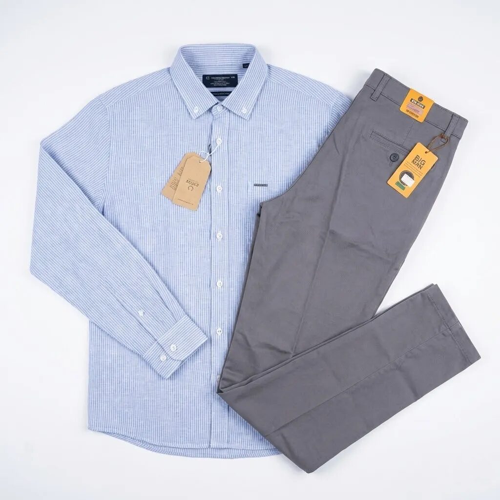 ست نیمهرسمی و کلاسیک اداری آبی آسمانی ملایم و طوسی فیلی