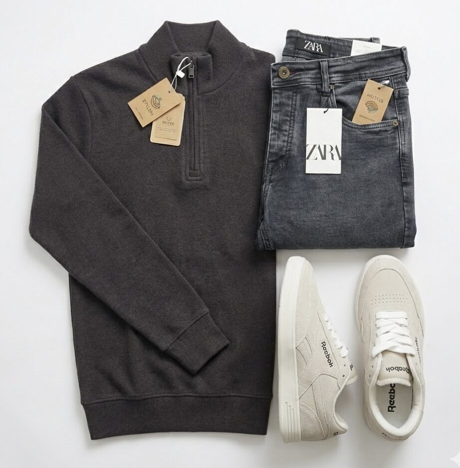ست کژوال پاییزه مدرن با ترکیب رنگی نسکافهای ملایم و طوسی سنگی